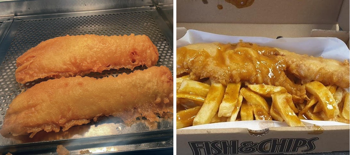 The fish and chips from this tradicional fish and chip shop are amazing. Freindly staff, great prices and fantastic food. You can’t beat it.